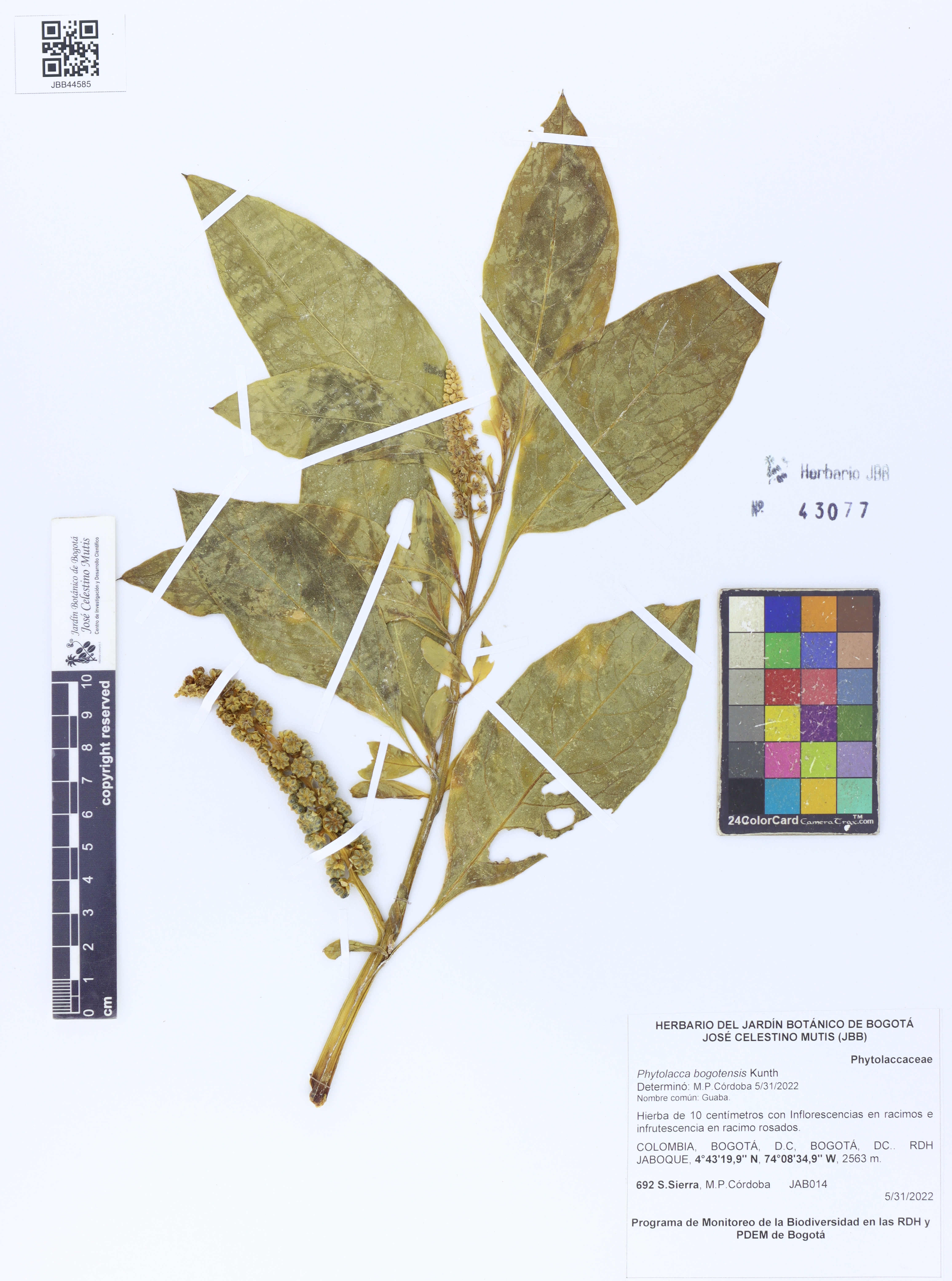 Scientific name Phytolacca bogotensis Kunth