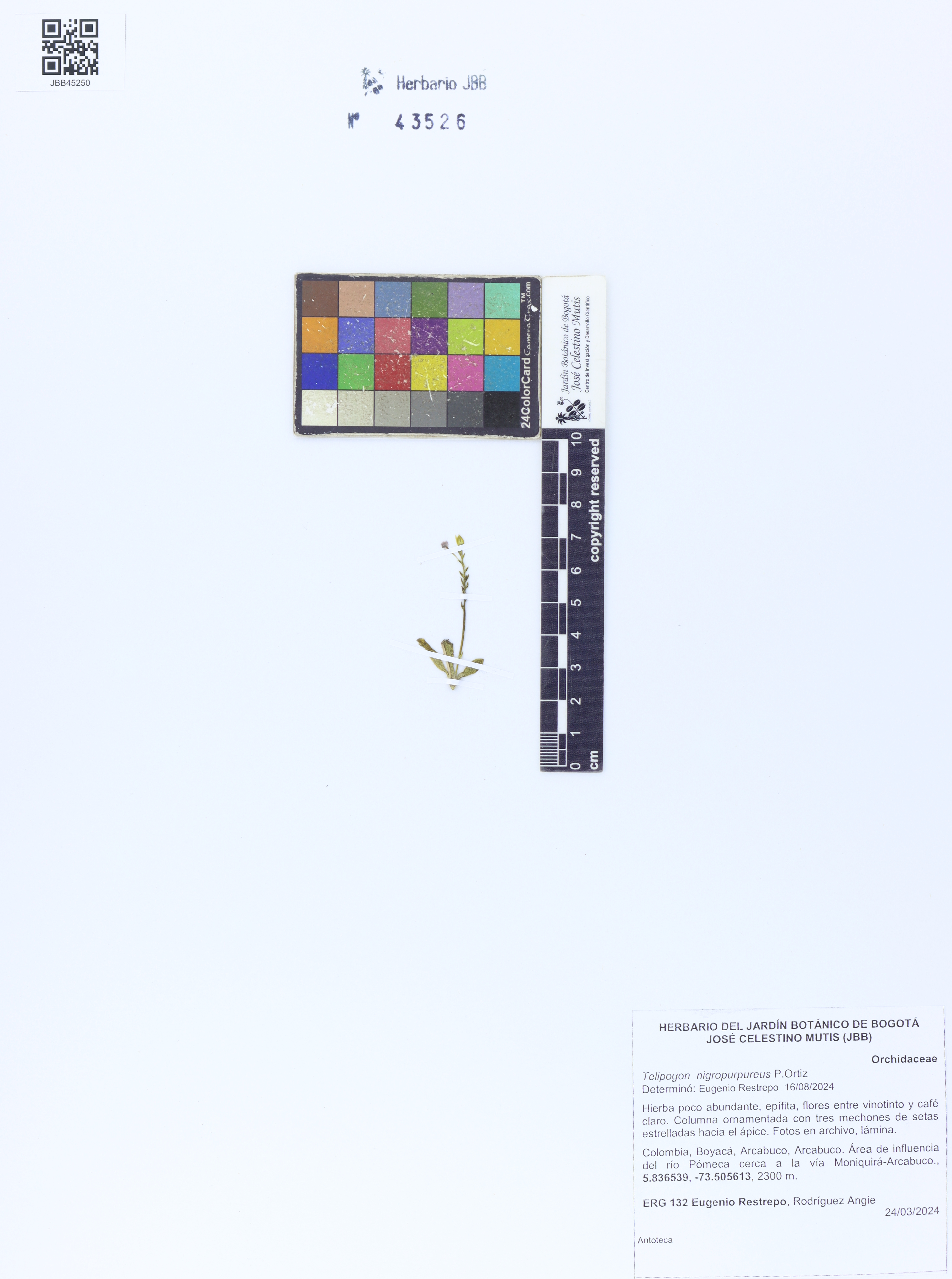 Scientific name Telipogon nigropurpureus P. Ortiz