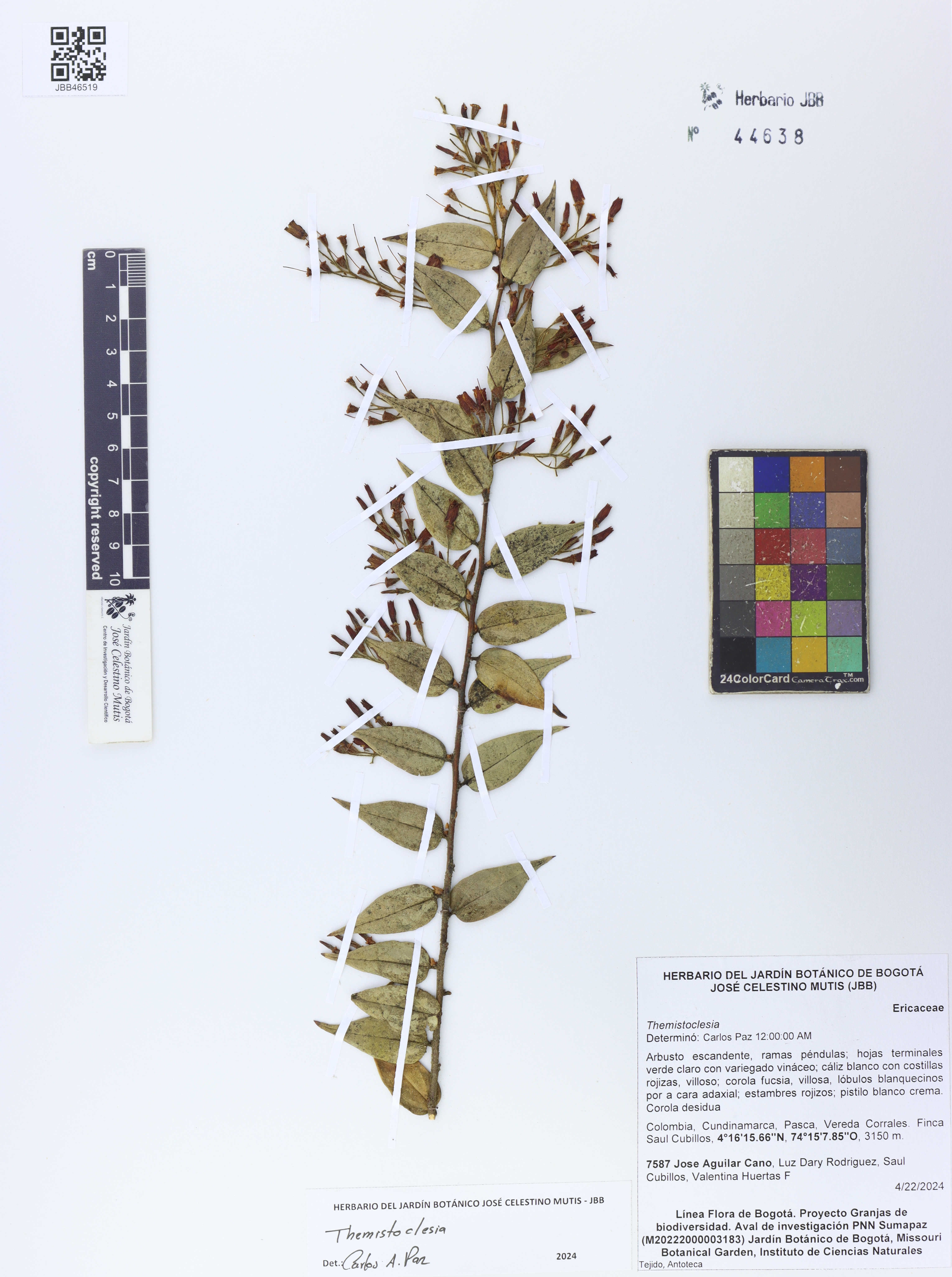 Plant description Arbusto escandente, ramas péndulas; hojas terminales verde claro con variegado vináceo; cáliz blanco con costillas rojizas, villoso; corola fucsia, villosa, lóbulos blanquecinos por a cara adaxial; estambres rojizos; pistilo blanco crema. Corola decidua