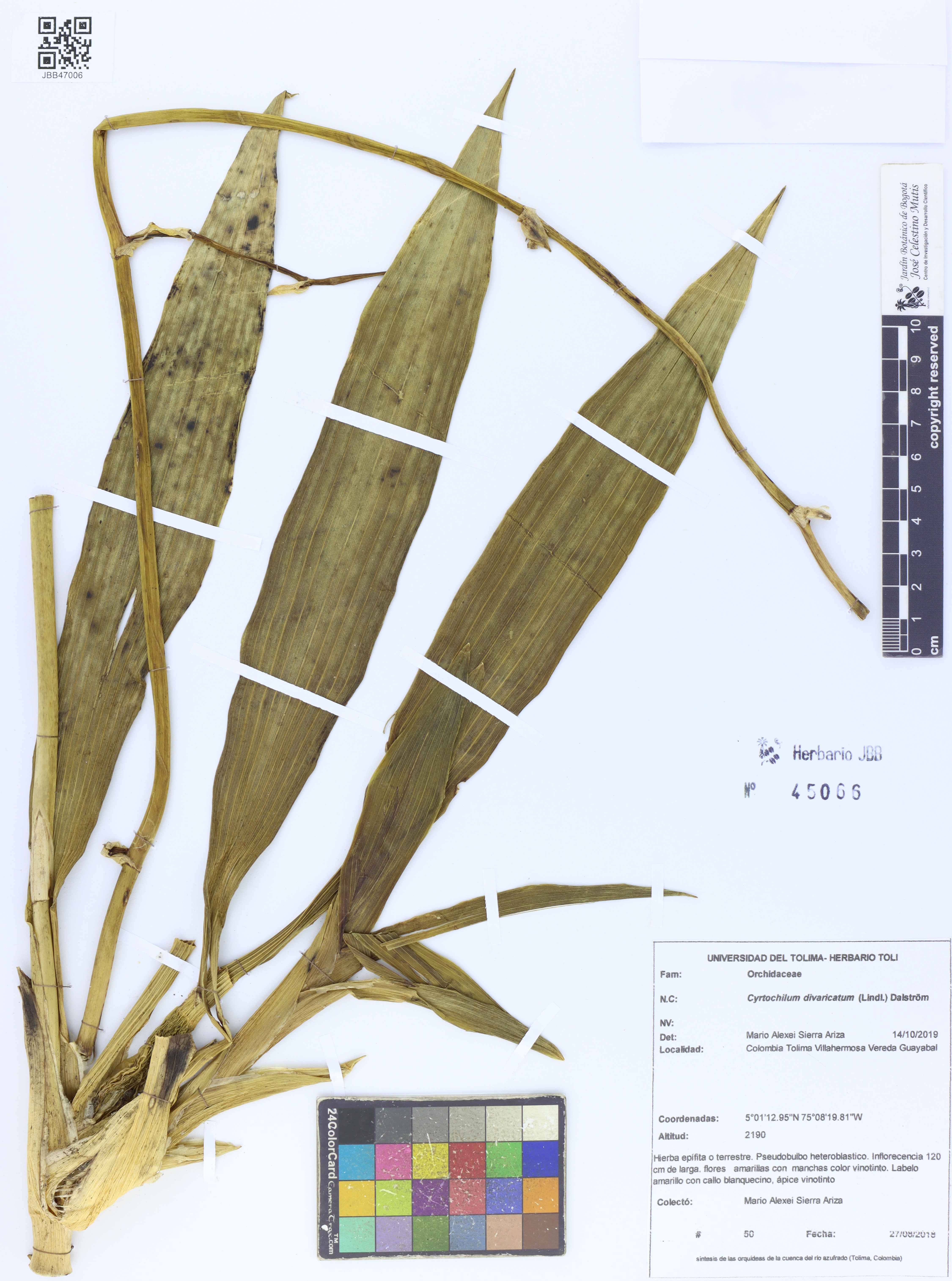 Scientific name Cyrtochilum divaricatum (Lindl.) Dalström